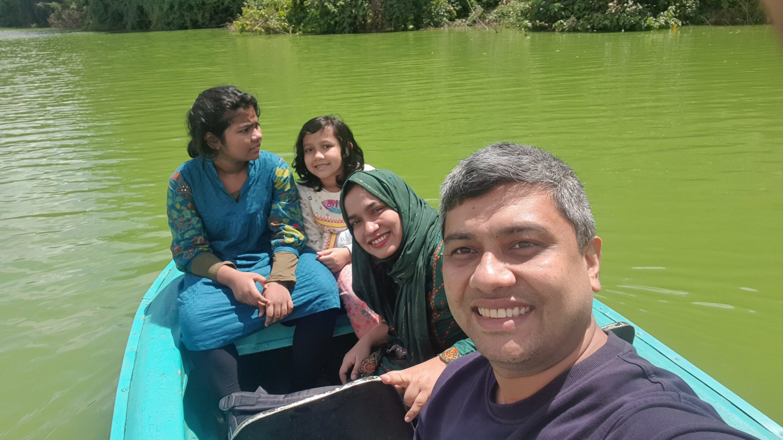 আমরা ঘাটে চলে আসলাম। দিন শেষ হয়ে যায়নি কিন্তু নীল আকাশের রঙয়ে লেকের সবুজ পানিও নীল হয়ে গিয়েছে। ফিরে যাওয়ার আগে, আমি আর সোহান শুধু ছবি তুলছিলাম। ক্যামেরাবন্দী প্রতিটা ছবি অপরূপ লাগছে। মেয়েরা বাবামায়ের এই ছবি তোলার আতিশয্যে অতিশয় বিরক্ত হচ্ছিল। অর্ডার করা চিকেন প্যাকেট করে দিল হোসেইন। সেটা নিয়ে, মেয়েদের গাড়িতে তুলে, আবার ফেরার পথ ধরলাম।