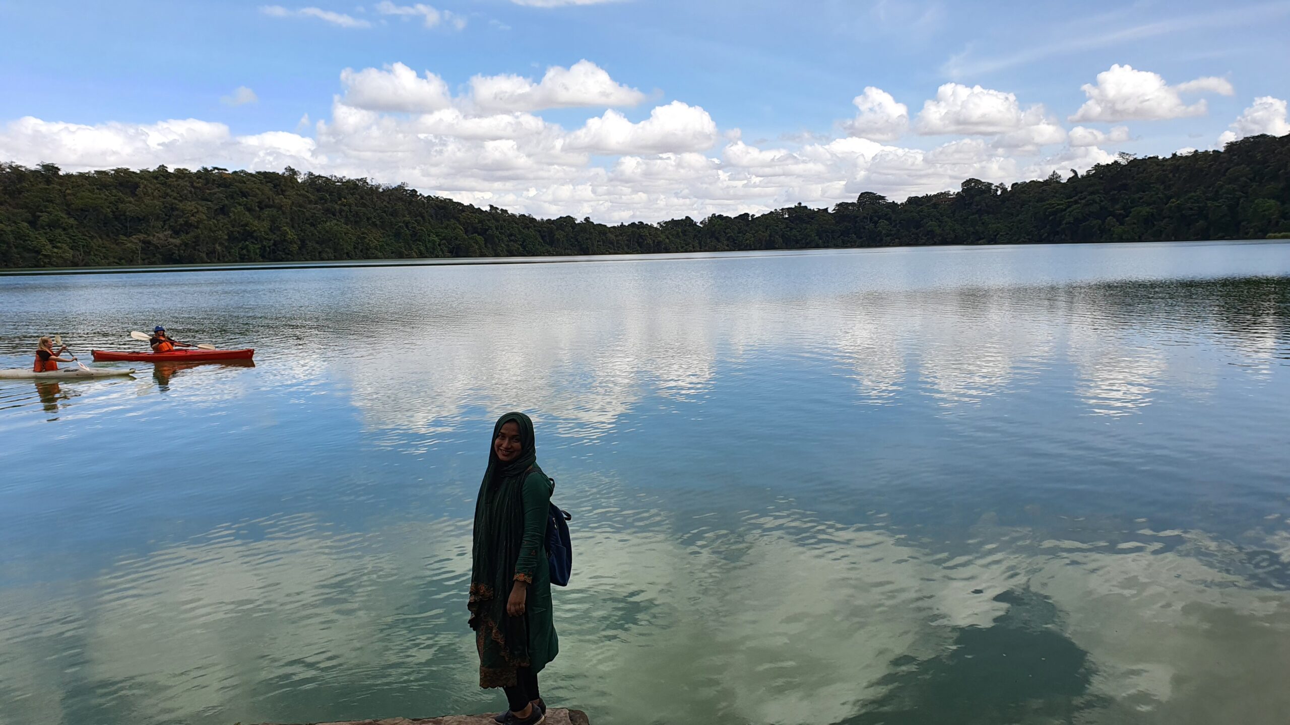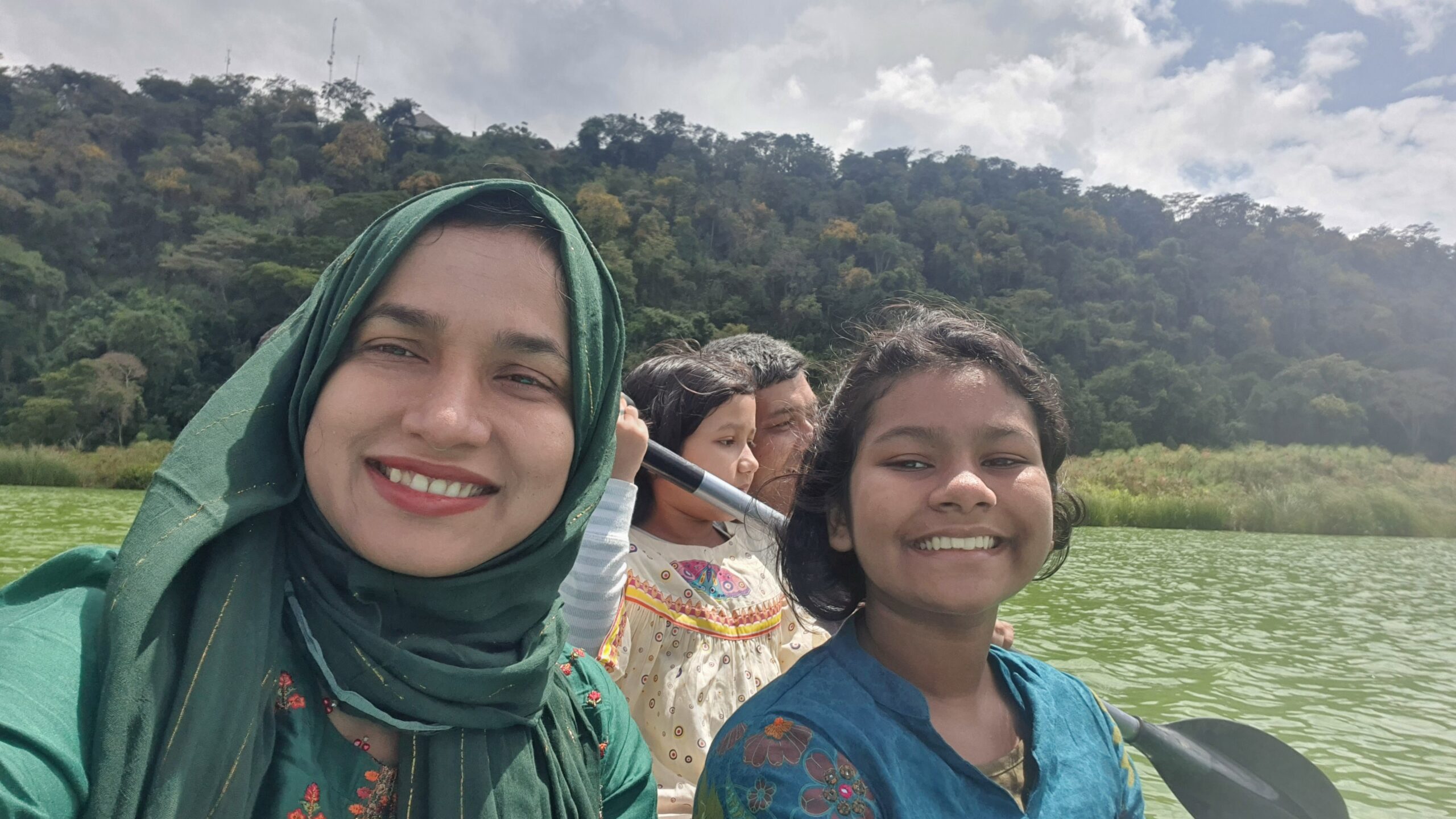 "উঁচু পাহাড়ে ঘেরা সবুজ ডুলুটি লেকের সামনে দুই বাচ্চা নিয়ে আমি অতি সাধারণ এক বাংলাদেশি মেয়ে বসে আছি। আমি কখনো কল্পনাও করি নাই মহান আল্লাহতায়ালা আমাকে এইখানে আসার সুযোগ করে দিবেন।"